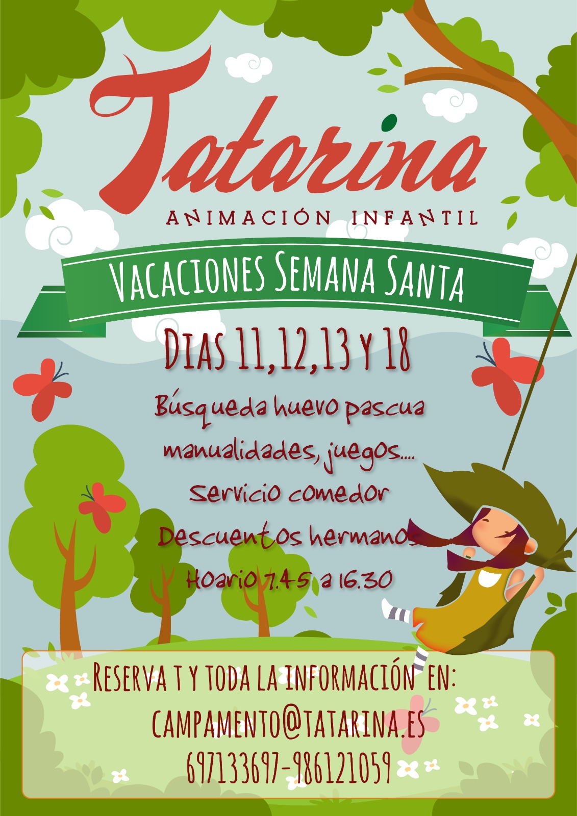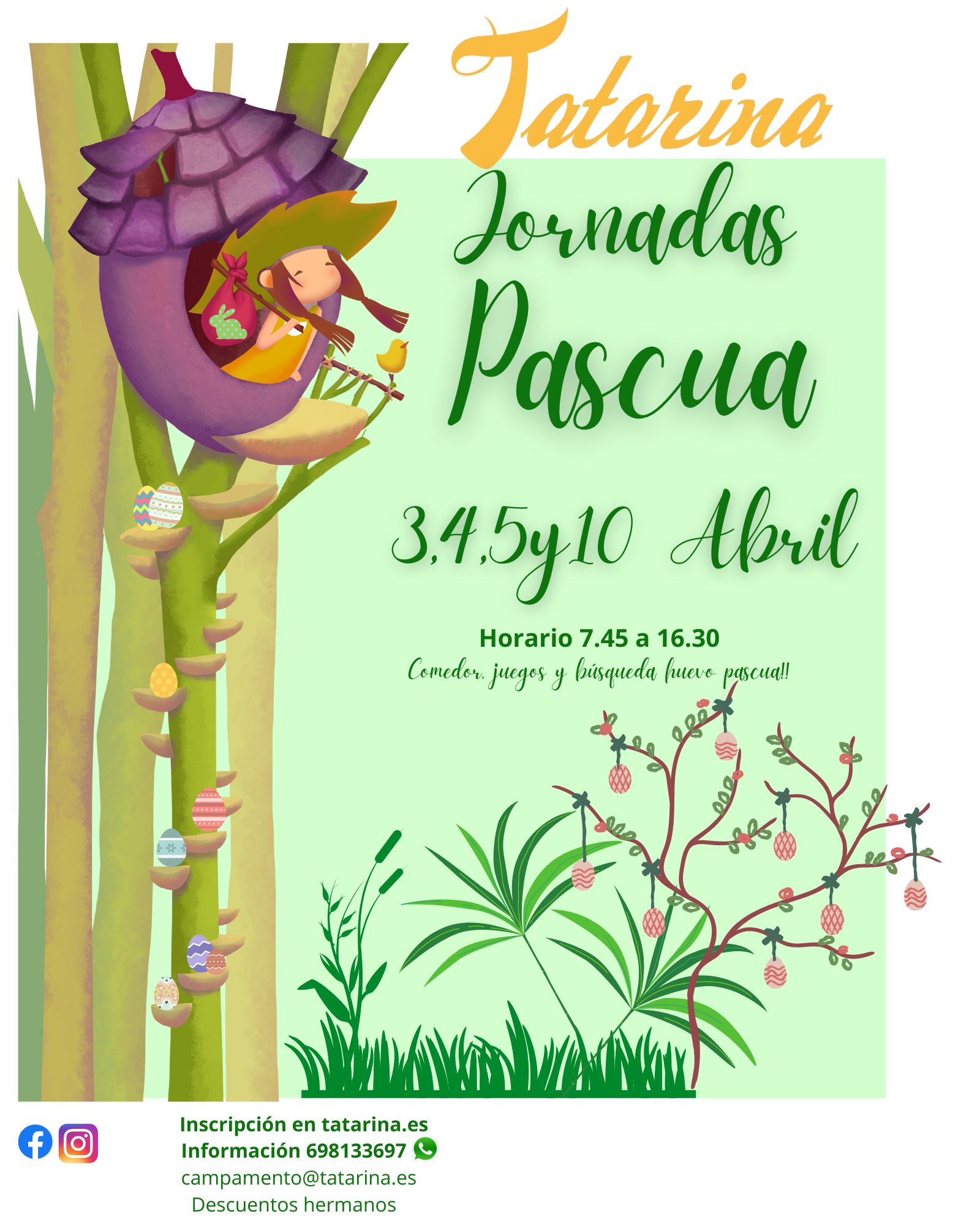 PASCUA EN TATARINA!!.🐇🐰 📅 Los días 3,4,5 y 10 tenemos plan para los peques! En el horario habitual, de jornadas de mañana, 7.45 a 16.30. ...